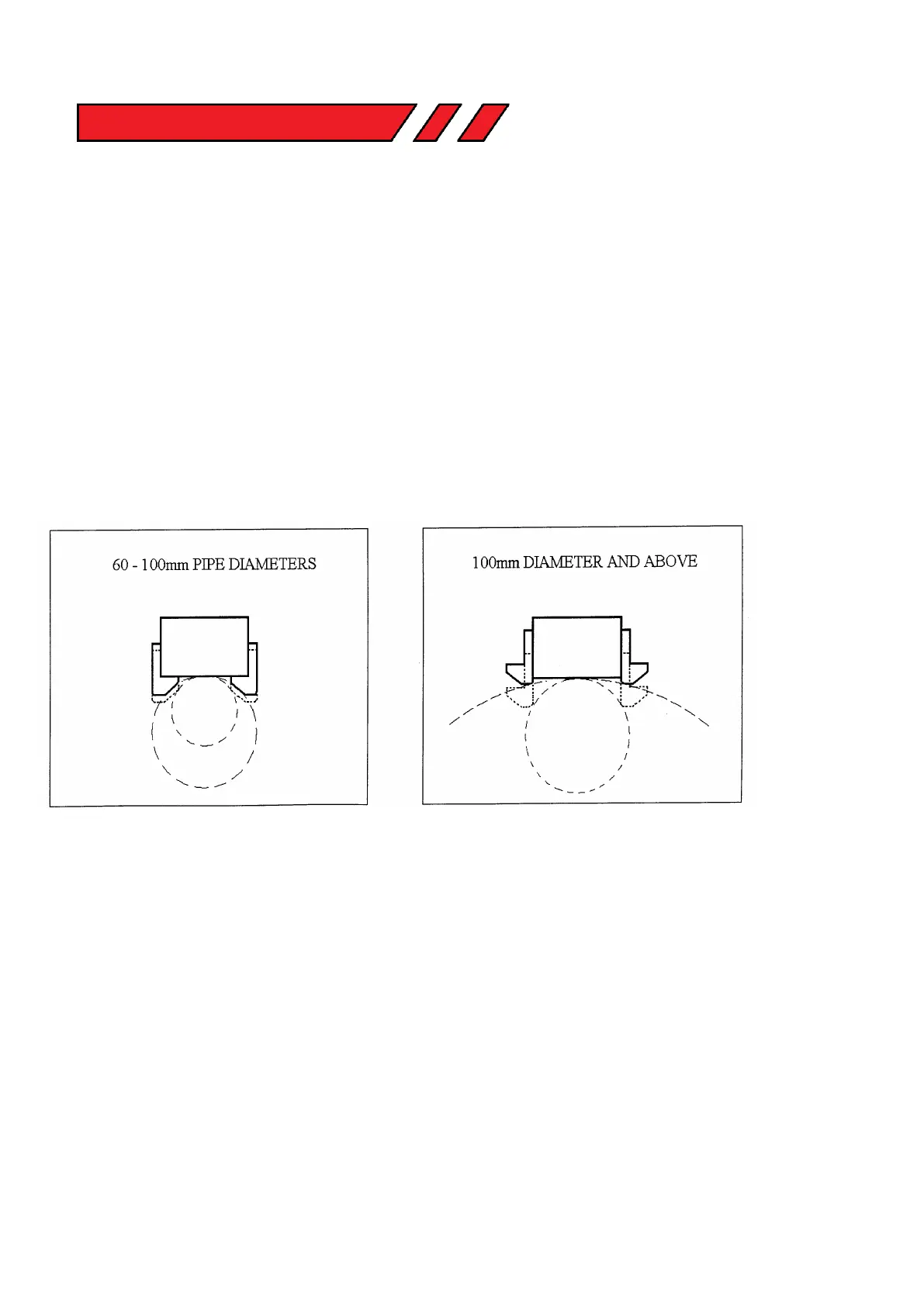 • Locate the machine on the centreline of the pipe taking care that the magnet is in line with the