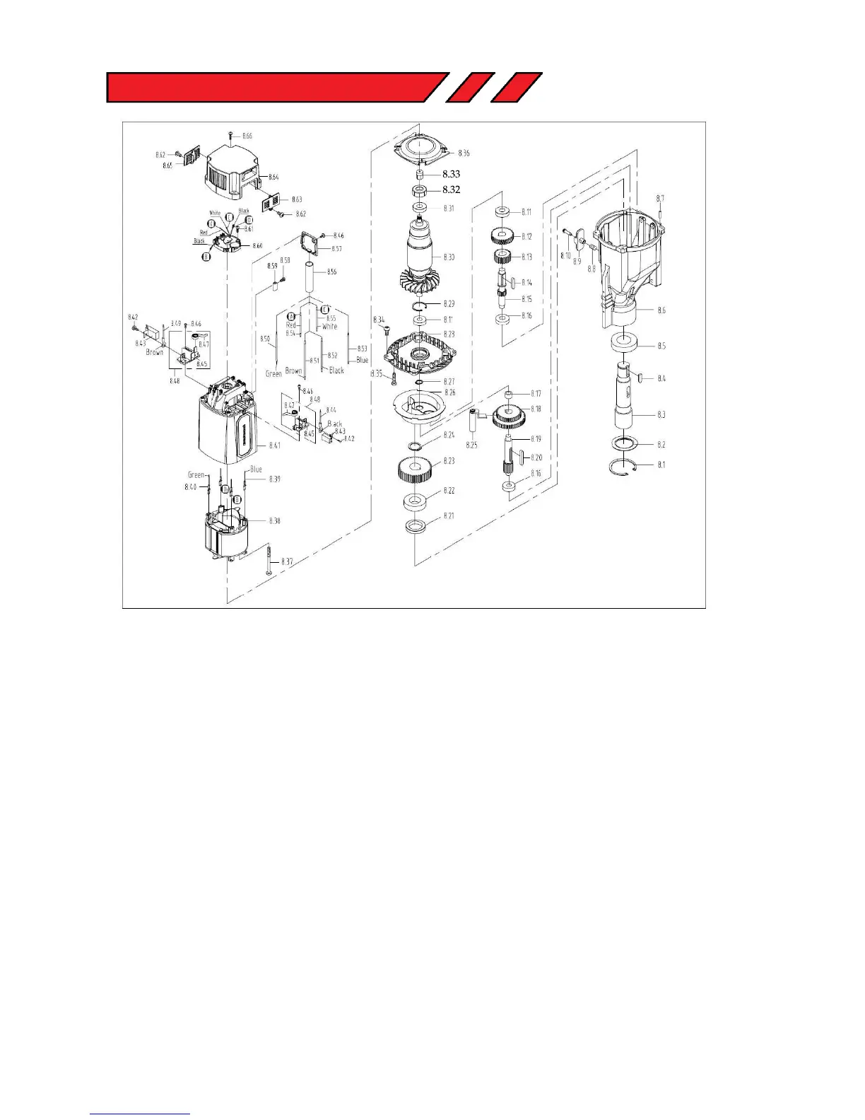 Rotabroach Element 75 - Motor and Gearbox Exploded View