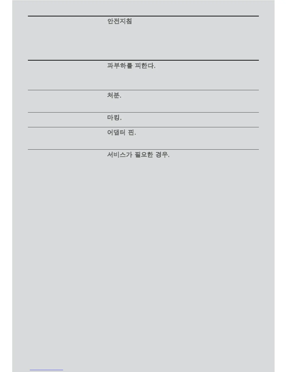 11 과부하를 피한다. 화재나 전기 충격의 위험을 방지하
