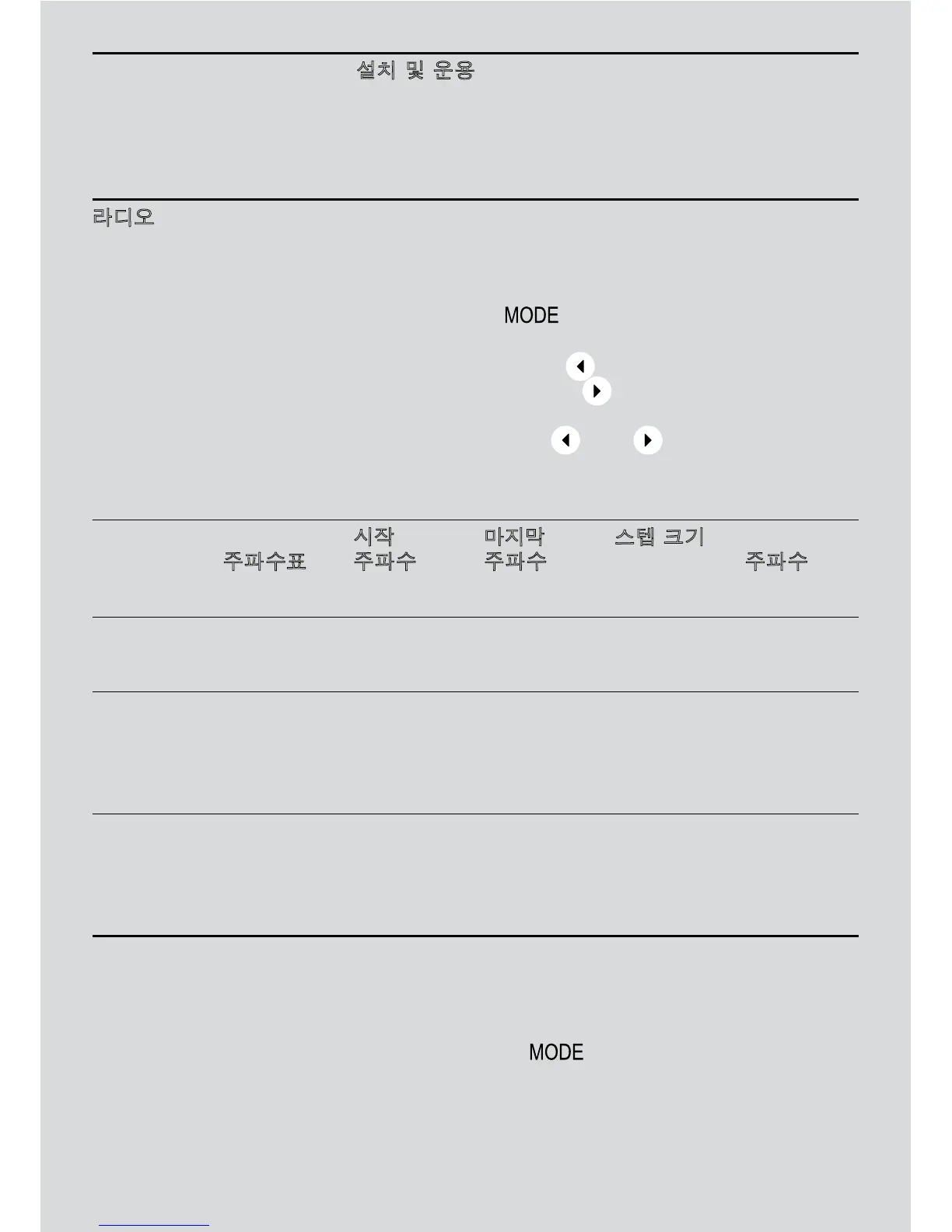 4라디오 수동 검색 : 를 한번 누를 때마다 주파