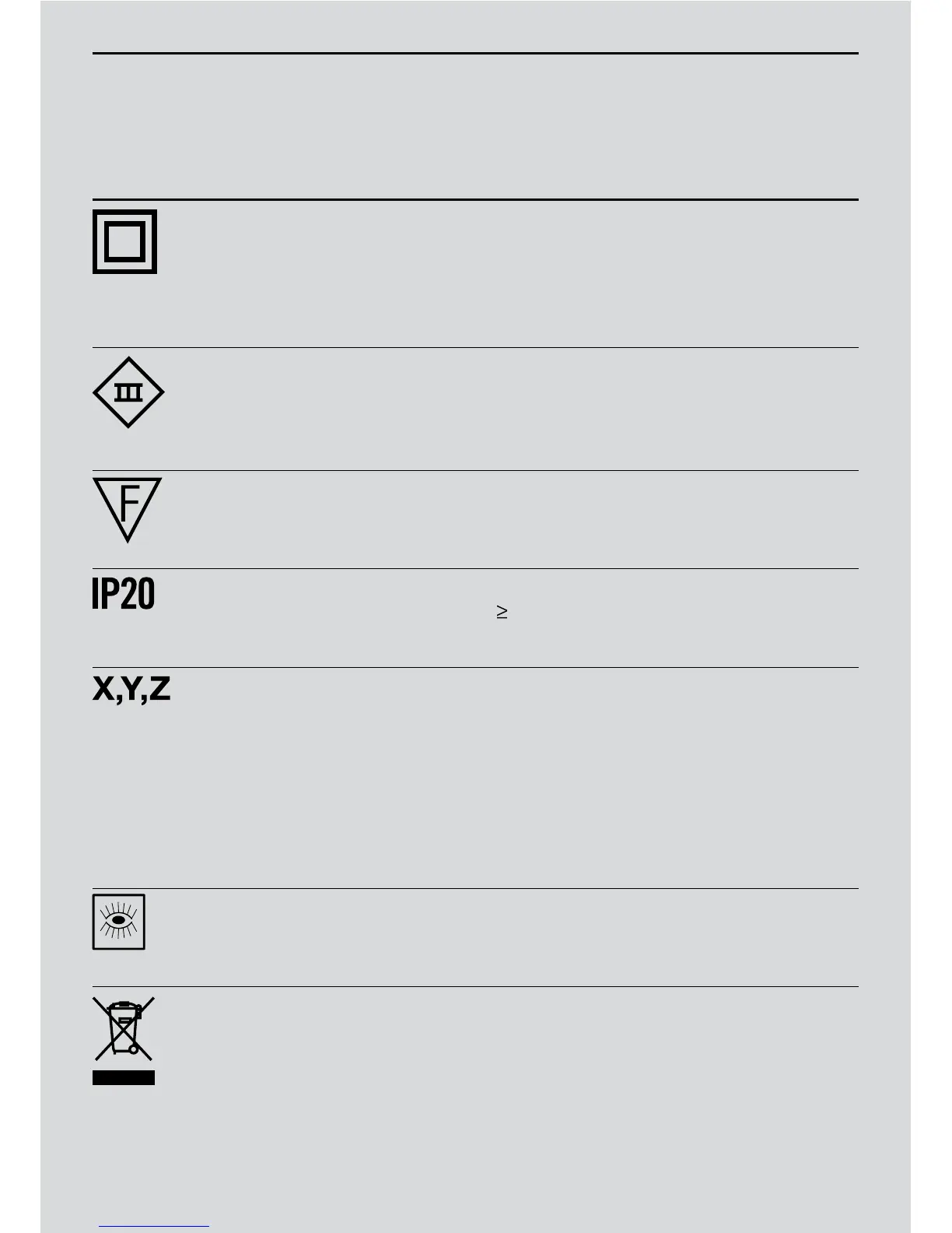 pioggia. Marcatura non prevista sull’apparecchio.