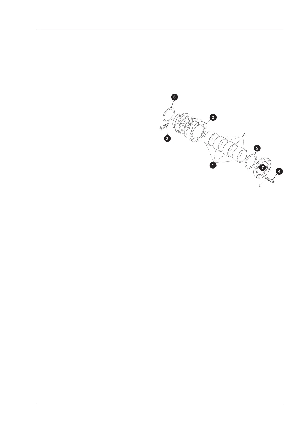 ➩ Tighten the clamping ring (Item 7) with the thrust washer (Item 5) with the 9 screws, to a tightening