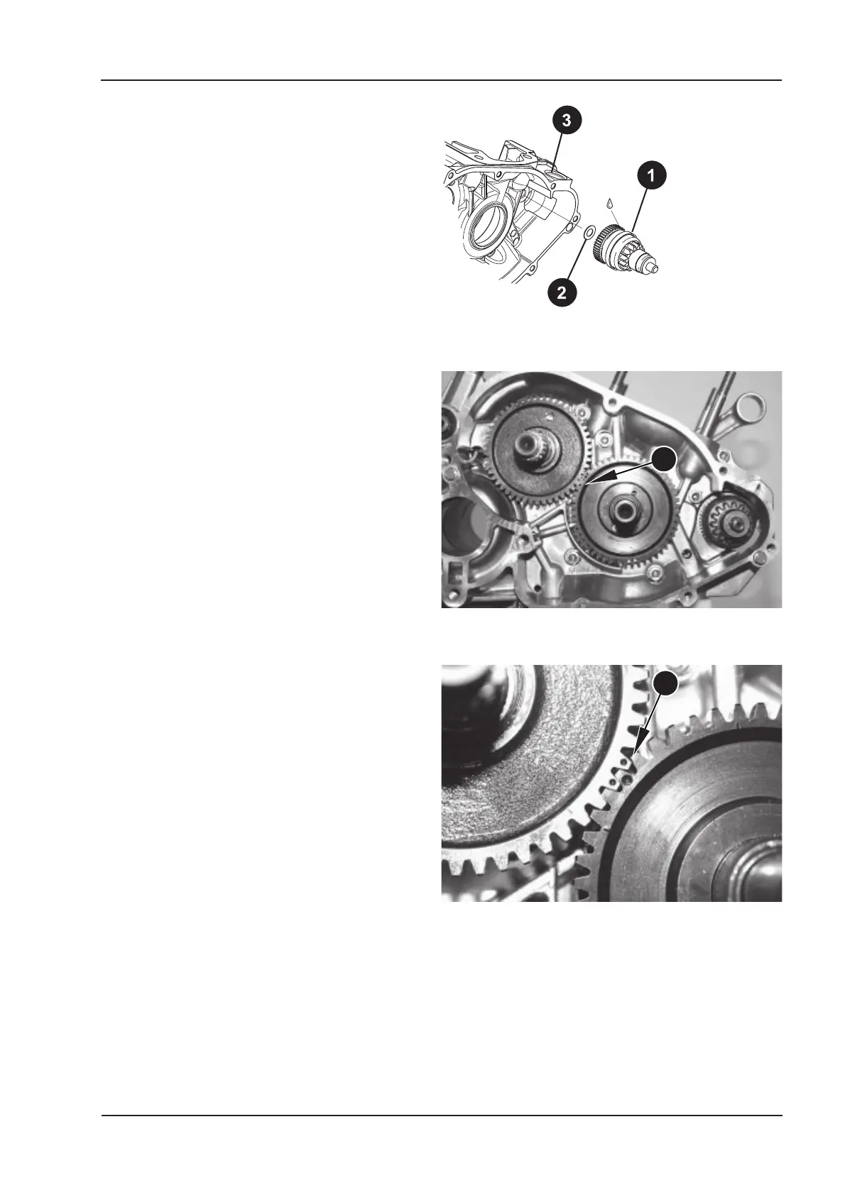➩ Insert the starter drive (Item 1) with thrust washer