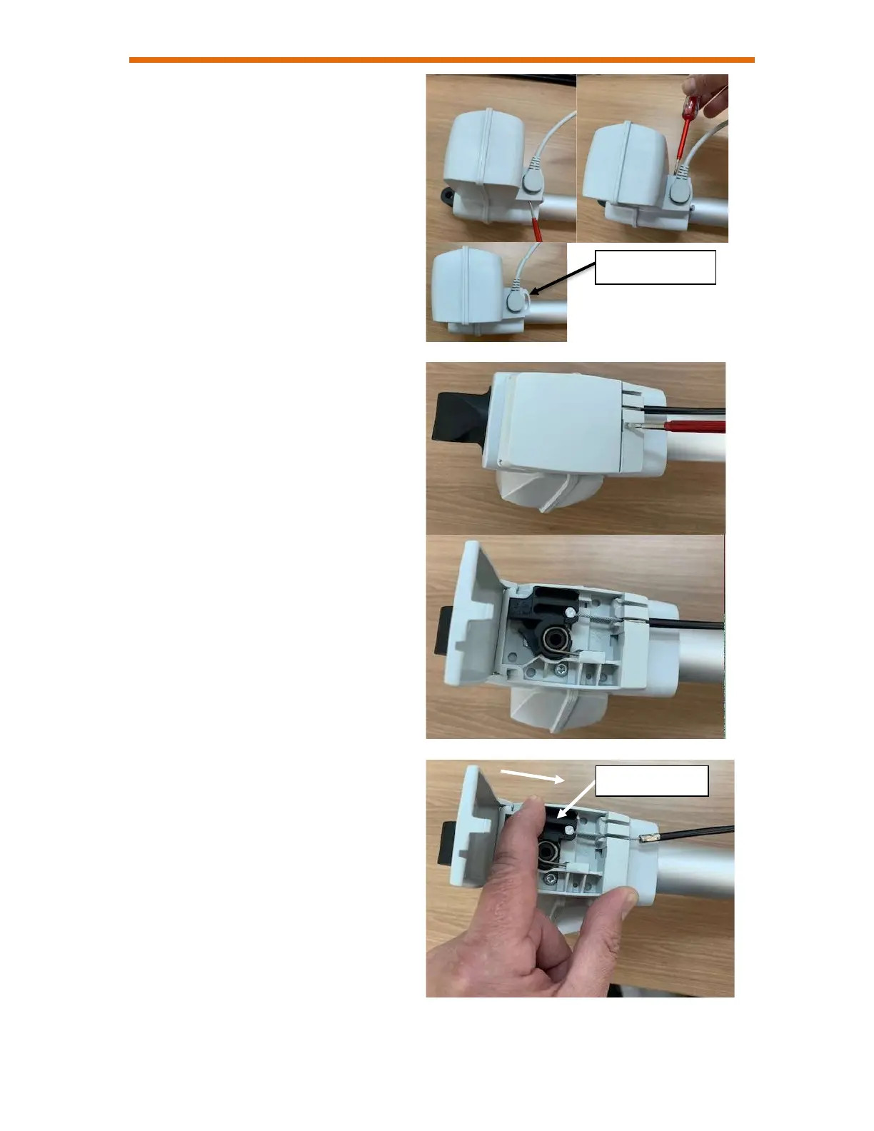 5. Disconnect motor cable (A) by