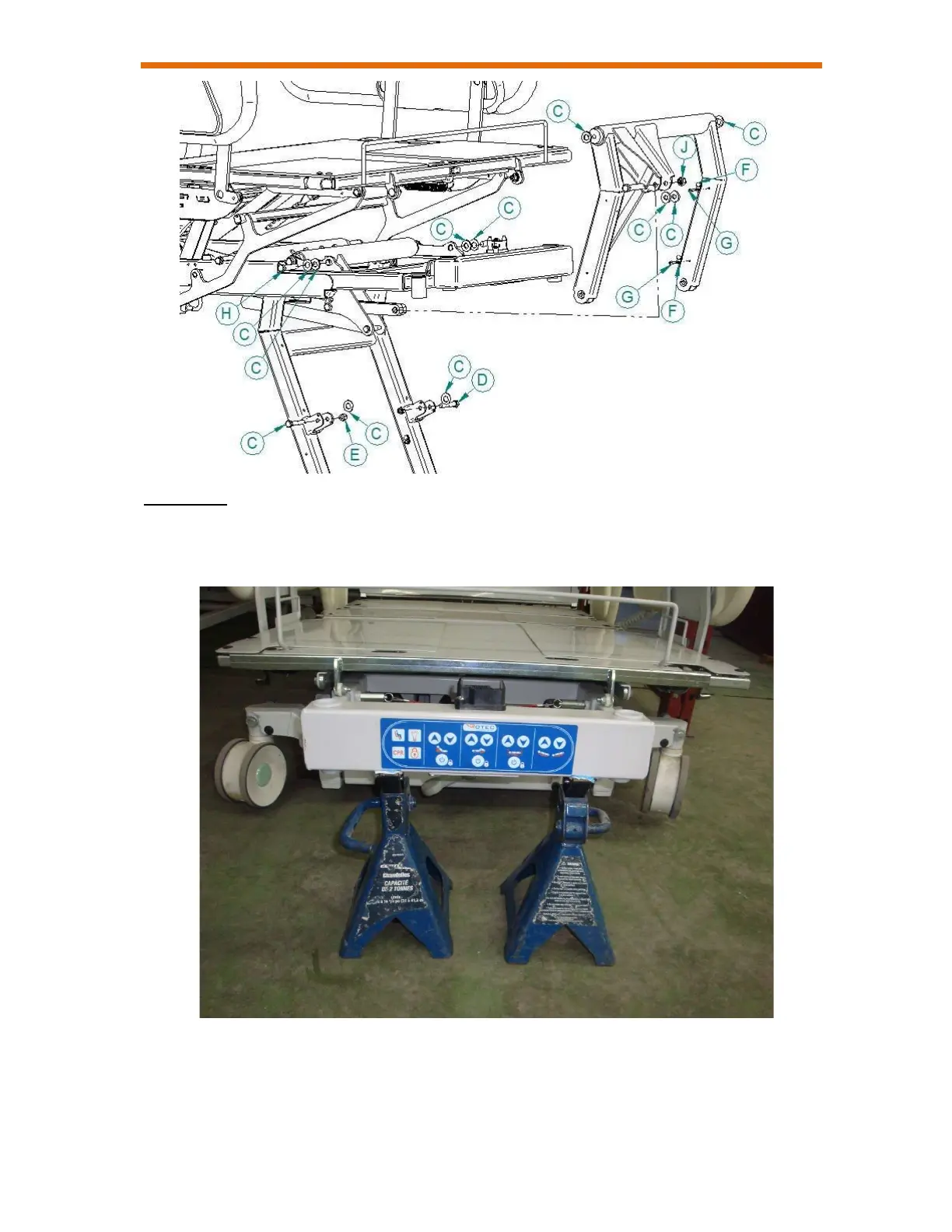 1. Raise the bed to its highest position and apply the brakes.