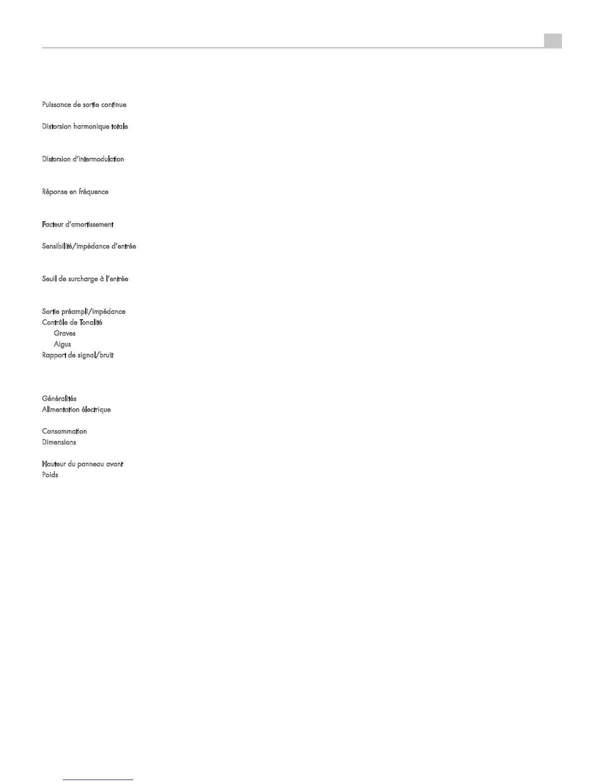 Distorsion d’intermodulation (60 Hz : 7 kHz, 4 : 1) < 0.03% à la puissance