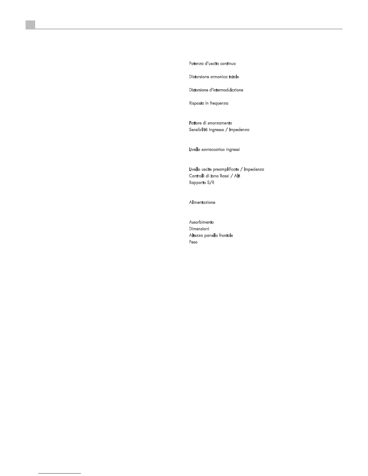 Distorsione armonica totale (20-20.000 Hz) < 0,03% alla potenza dichiarata,