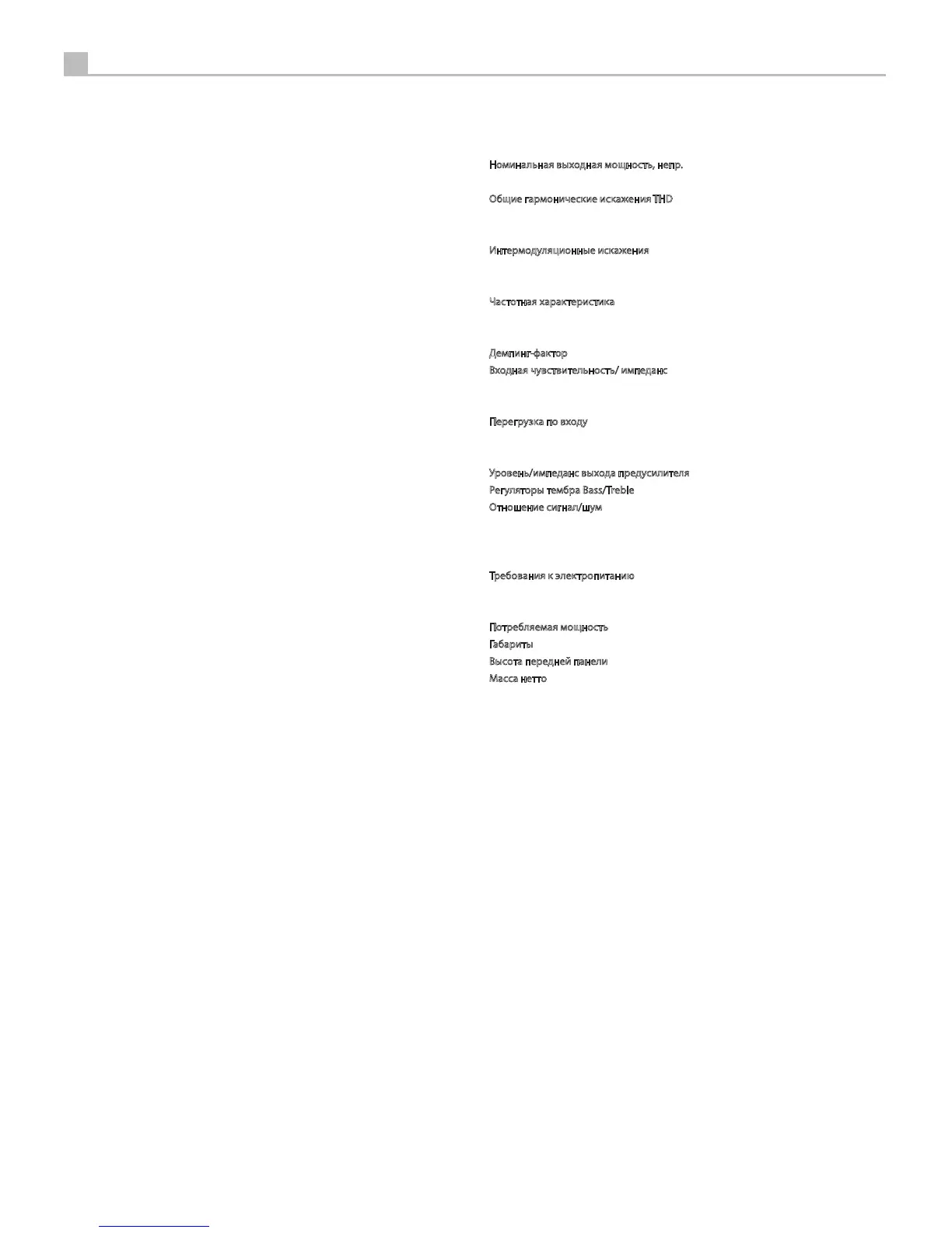 Интермодуляционные искажения (60 Гц : 7 кГц, 4:1) < 0,03% при номинальной