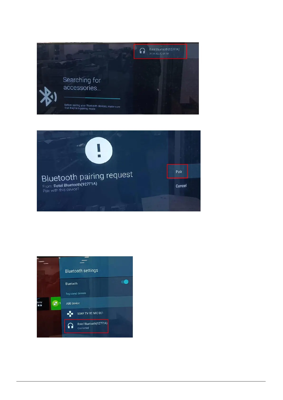 Step 6: Back to the TV Bluetooth settings menu, if pair work succeed the Rotel Bluetooth(927F1A)