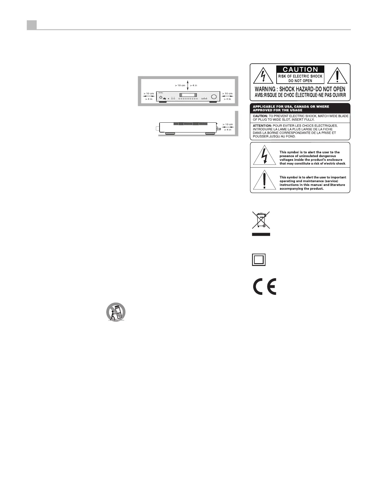 splashing. Do not place objects filled with liquids, such as vases, on