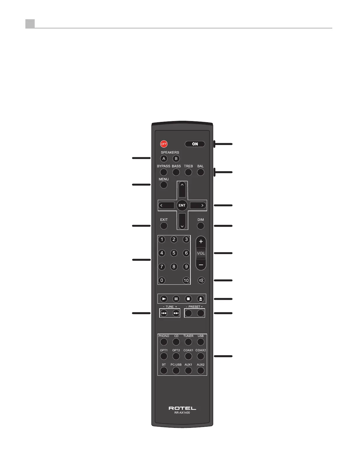 Rotel A14 - Remote Control RR-AX1400; Remote Control Layout and Button Functions