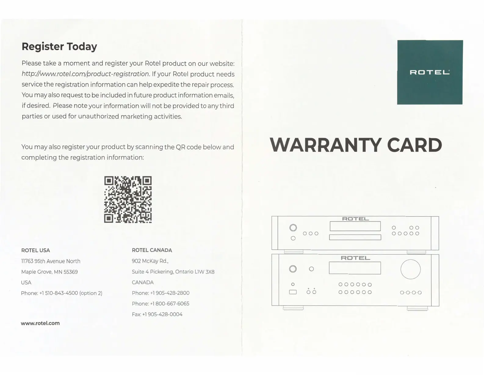 http://www.rotel.com/product-registration. If your Rotel