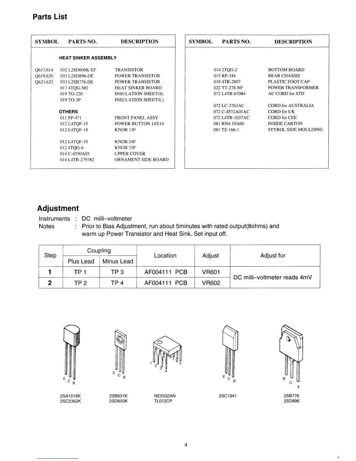 Rotel RA-921 - Adjustment; Bias Adjustment (VR601); Bias Adjustment (VR602)