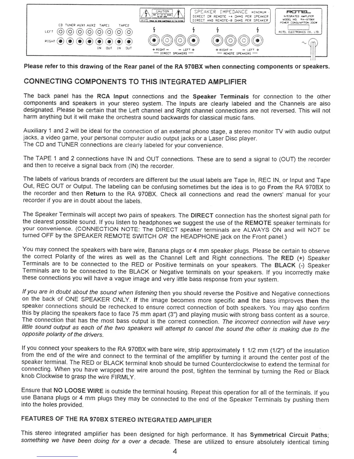 Rotel RA 970BX - Connecting Components; Speaker Terminal Usage; Speaker Polarity and Sound Quality