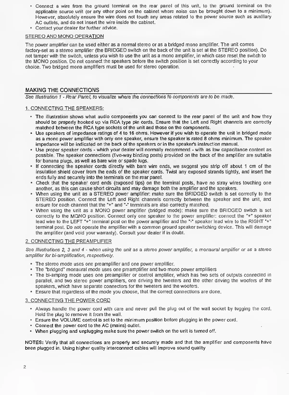 Rotel RB-970BX - MAKING THE CONNECTIONS; CONNECTING THE SPEAKERS; CONNECTING THE PREAMPLIFIER; CONNECTING THE POWER CORD