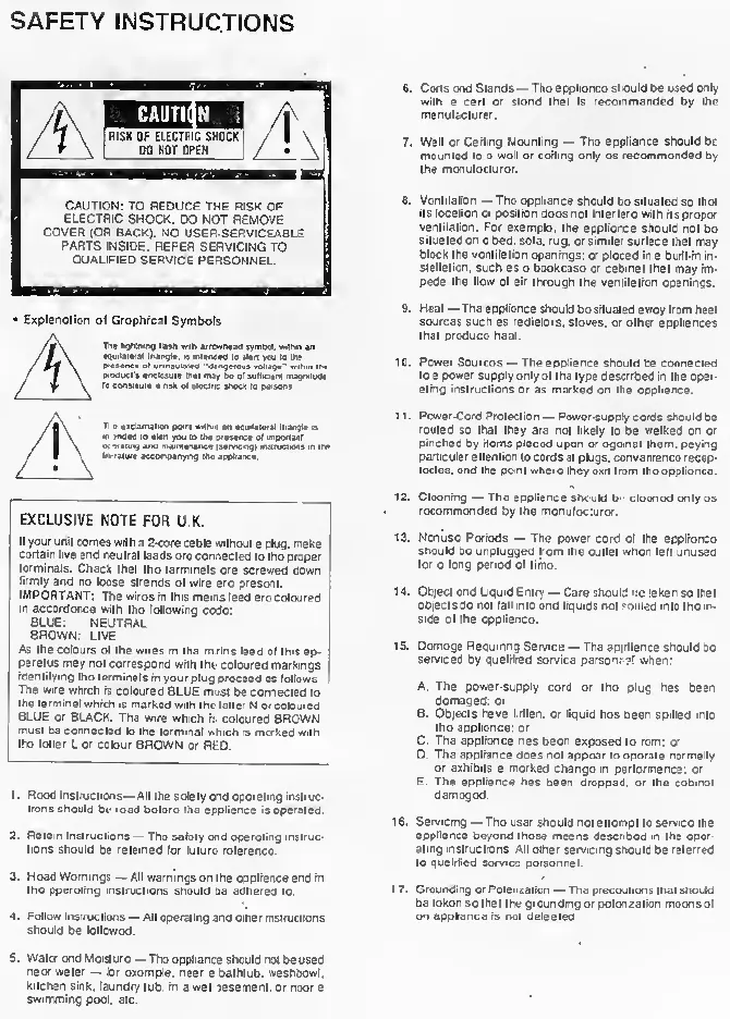 Rotel RB-990BX - Safety Instructions; Risk of Electric Shock Warning; Graphical Symbols Explanation; Exclusive UK Connection Note