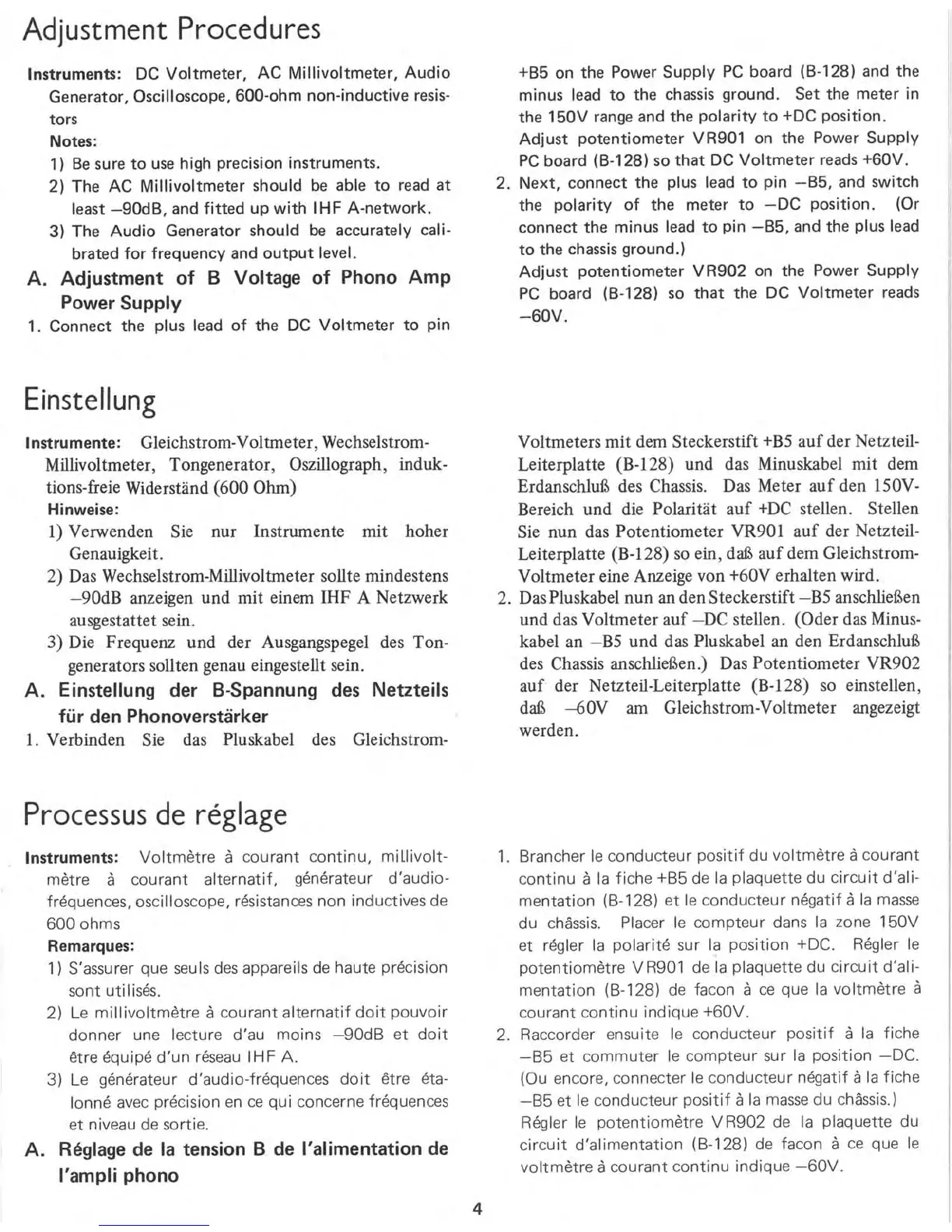 Rotel RC-5000 - Adjustment Procedures; Phono Amp Power Supply Voltage Adjustment