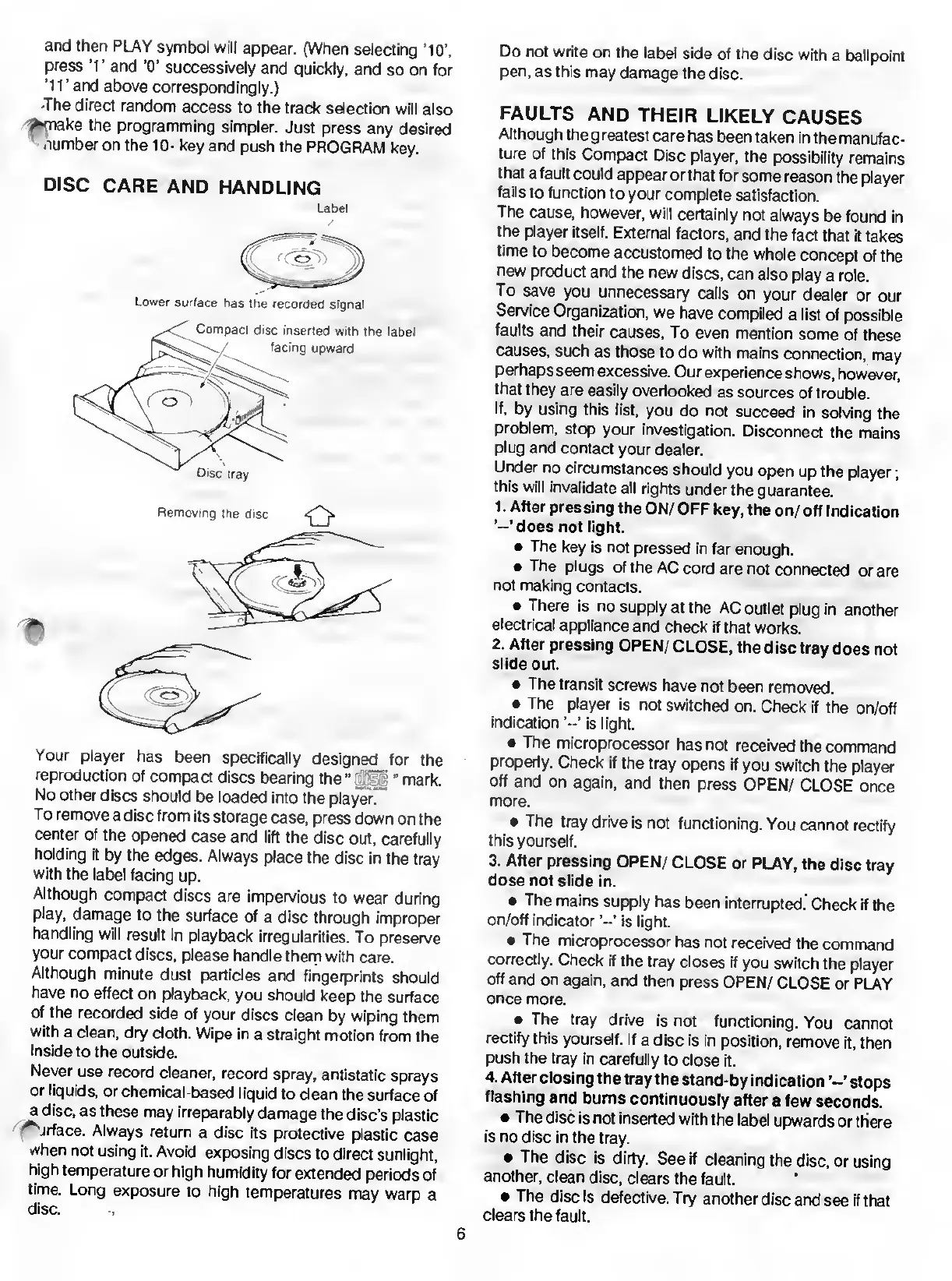 Rotel RCD-965BX - Disc Care and Troubleshooting Guide; Common Operational Faults and Causes