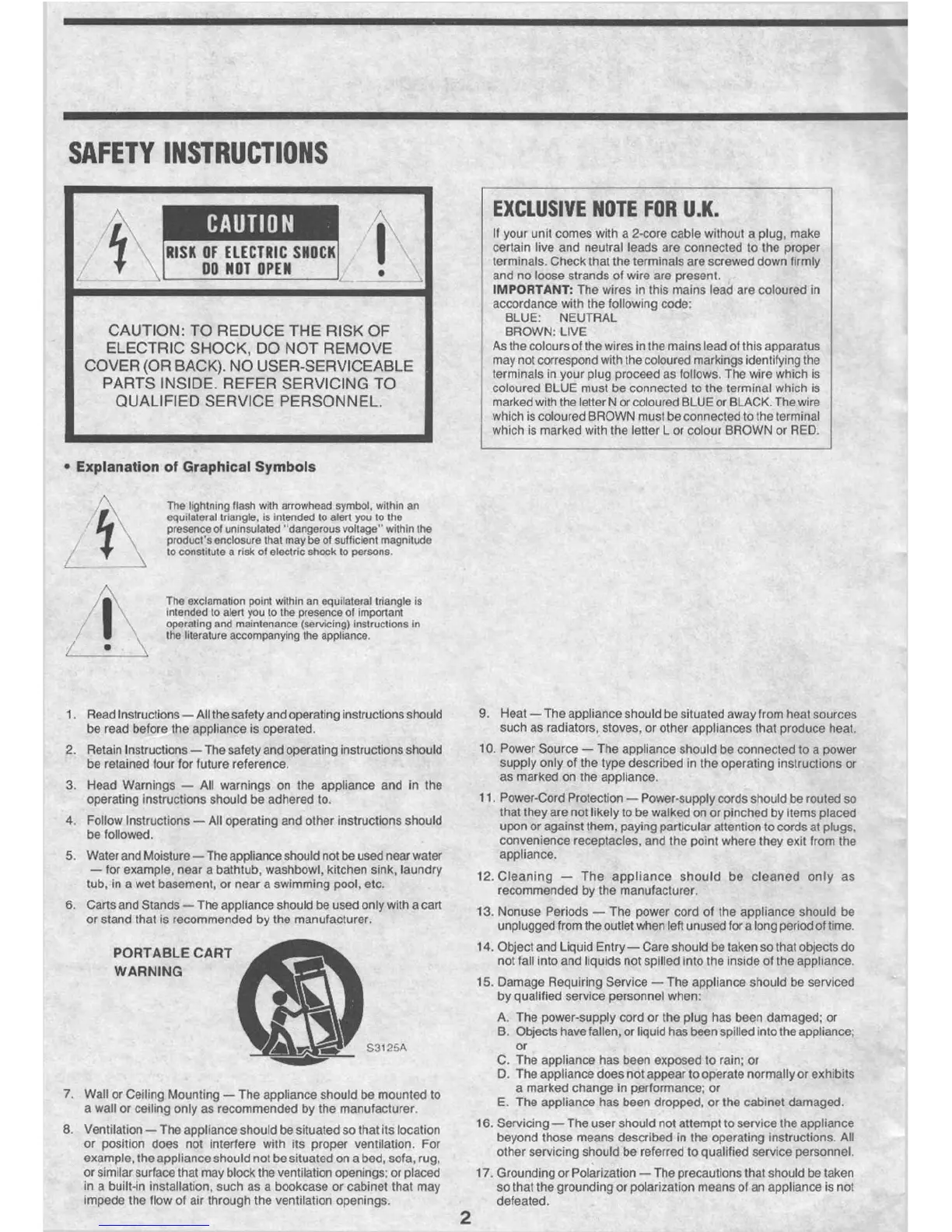 Rotel RHB-10 - Safety Instructions; Caution: Risk of Electric Shock; General Safety Precautions