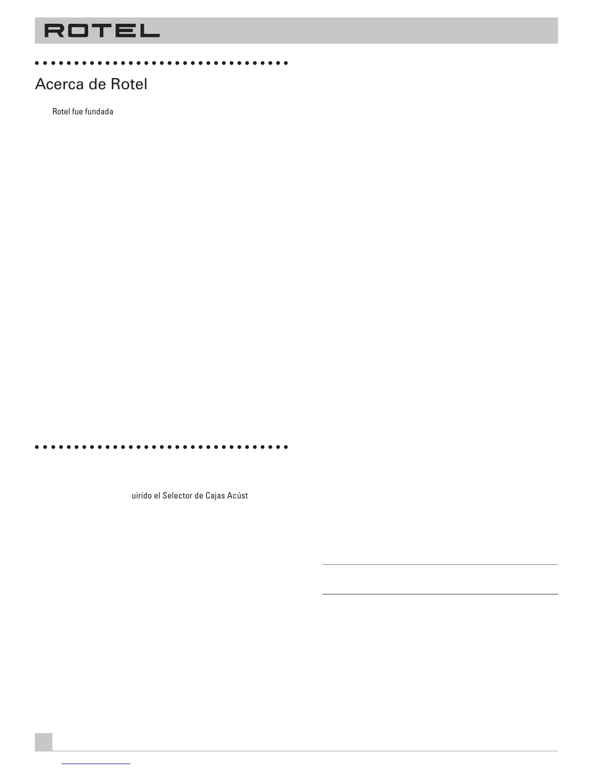 contacte con su distribuidor autorizado de Productos Rotel para
