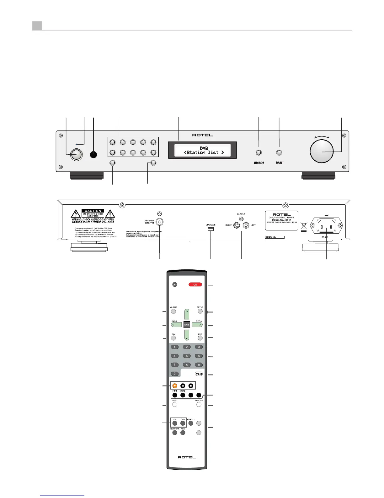 Rotel RT-11 - Controls and Connections Overview; Front and Rear Panel Identification