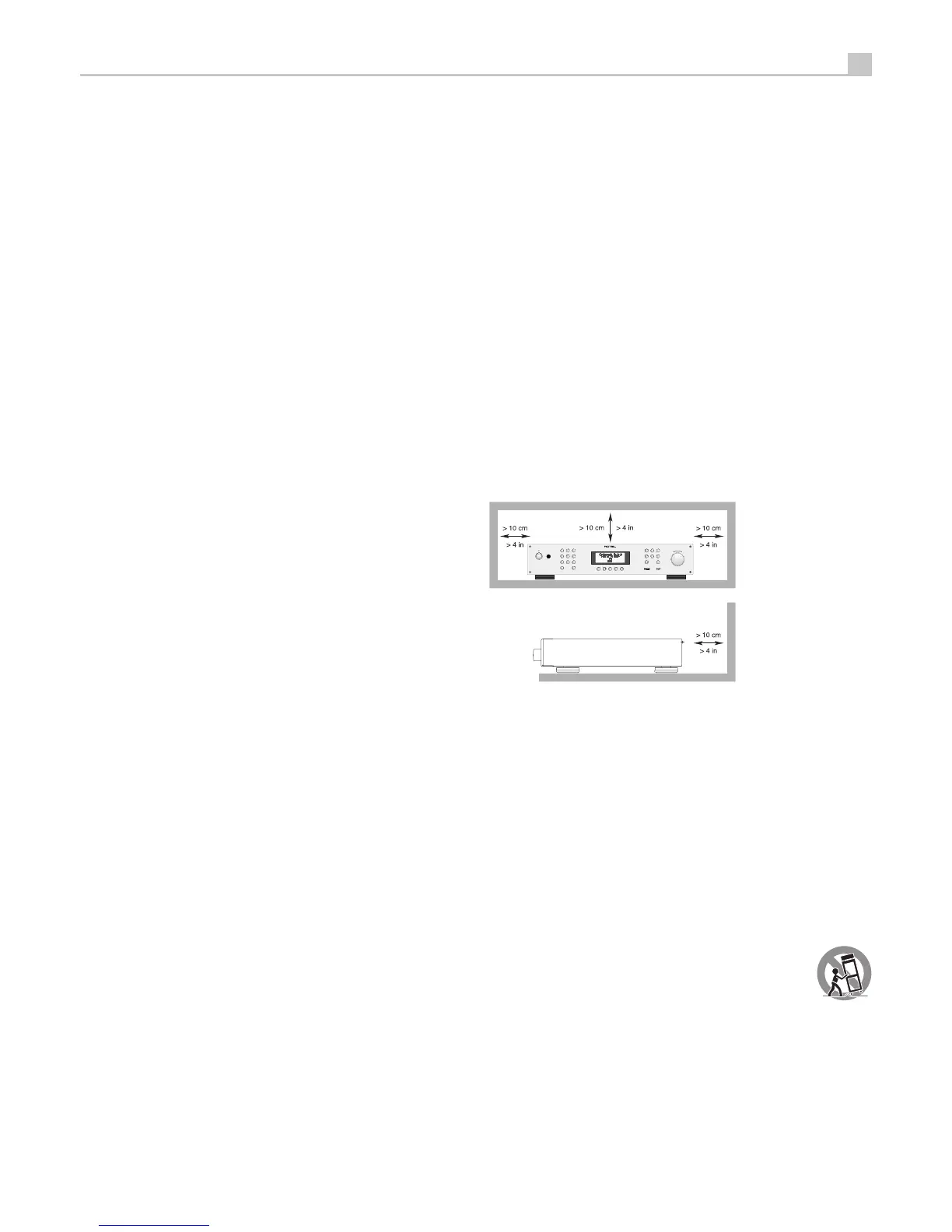 If the unit is placed in a bookcase or cabinet, there must be ventilation of the cabinet to allow proper