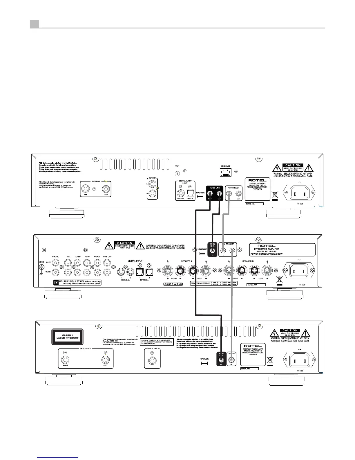 Figure 3: Rotel-Link Hook up (Black) and 12V Trigger (Gray)