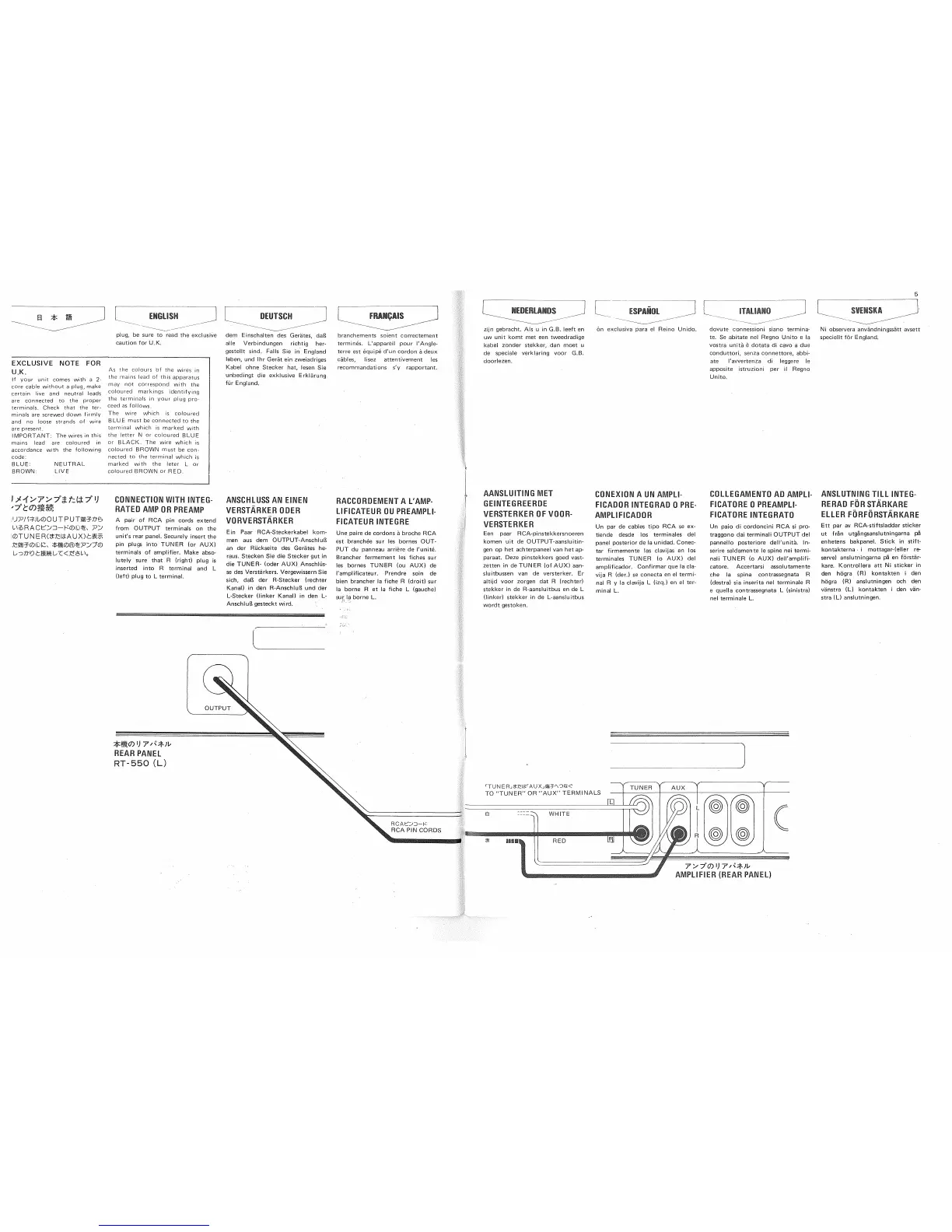 Rotel RT-550 - Initial Setup and Notes; Exclusive Notes for UK Users; Amplifier Connection Guide