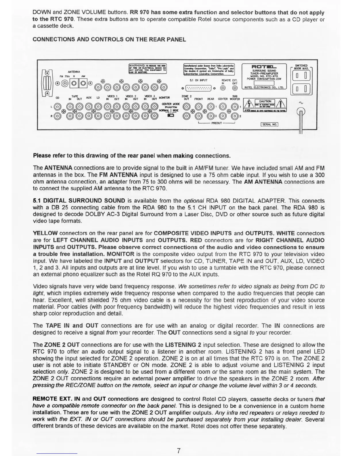 Rotel RTC 970 - Connections and Controls on the Rear Panel; Digital Surround Sound