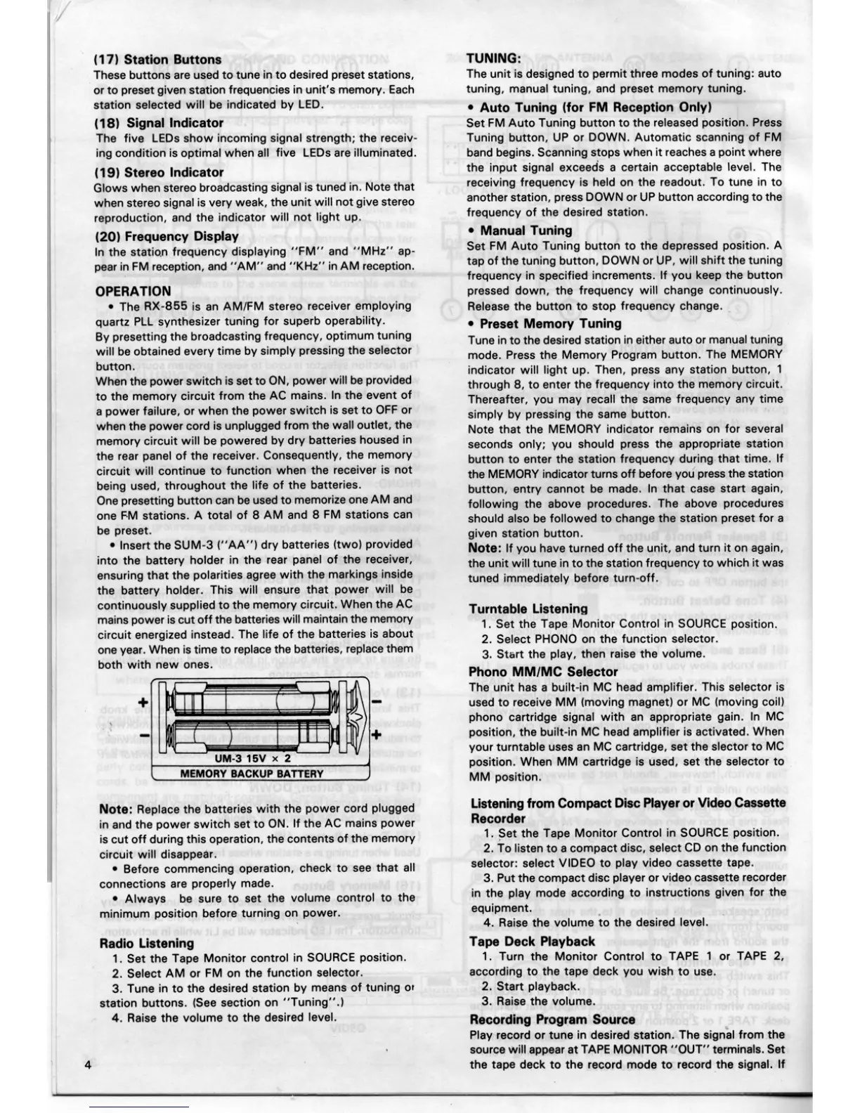 Rotel RX-855 - Operation and Usage; Radio Listening; Tuning Modes; Preset Memory Tuning