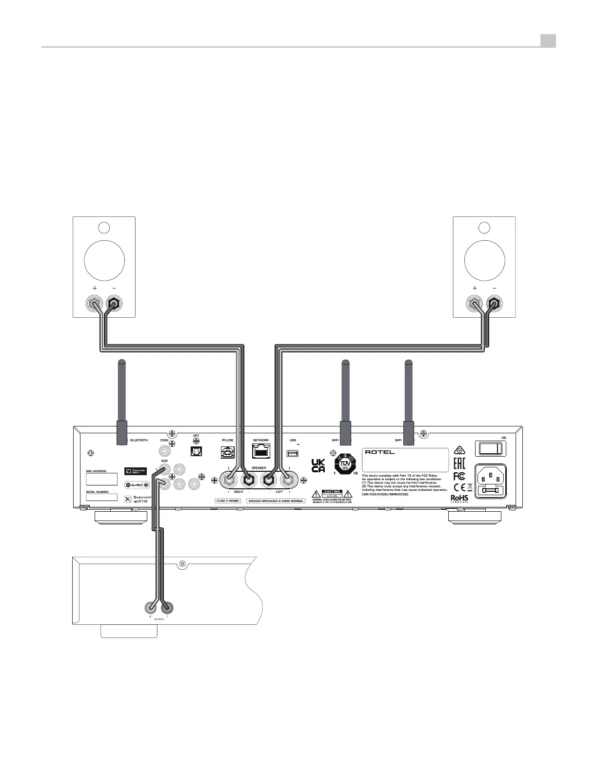 Conexiones para las antenas, Entrada analógica y Salida a las Cajas Acústicas