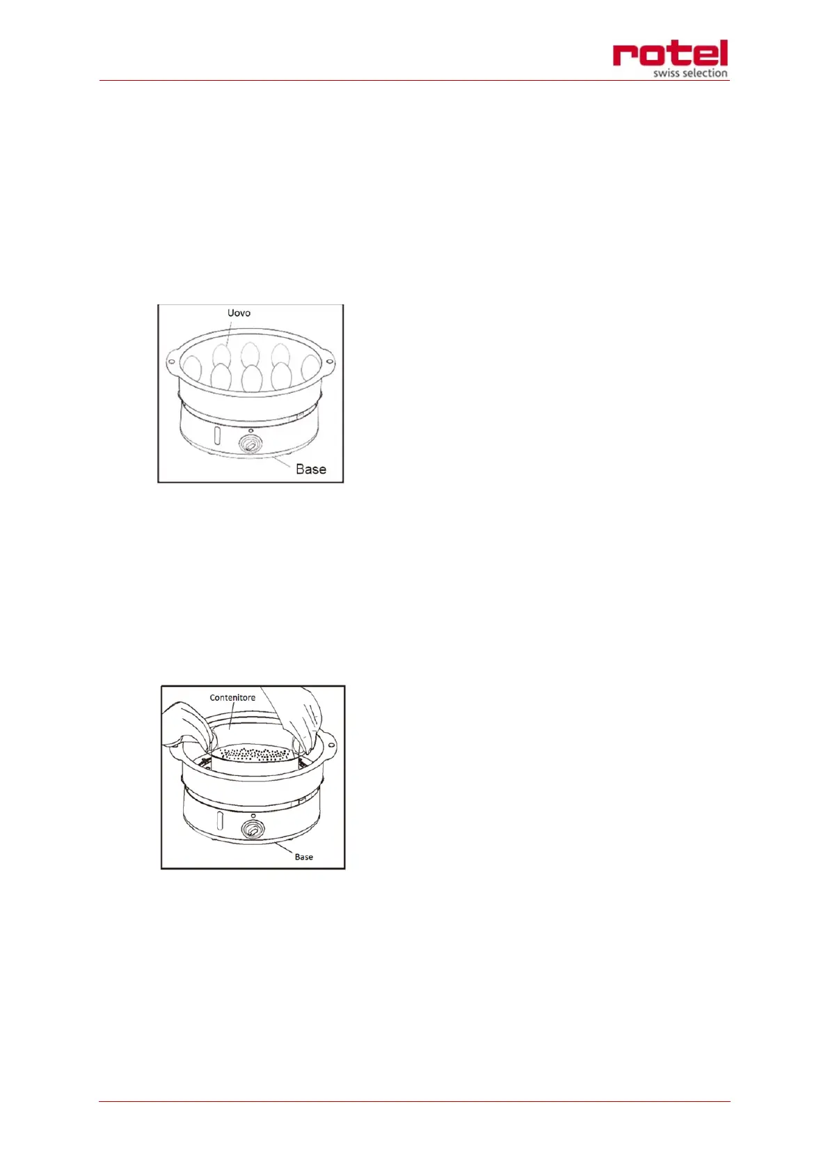 la valvola di uscita vapore. Per cuocere le uova può essere usato l'apposito