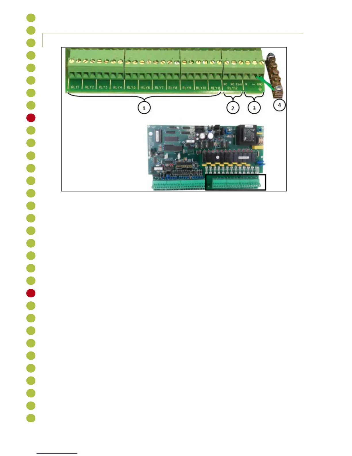 1. Relays 1 to 11: Each pair of terminals goes to one relay. These relays are fused with a
