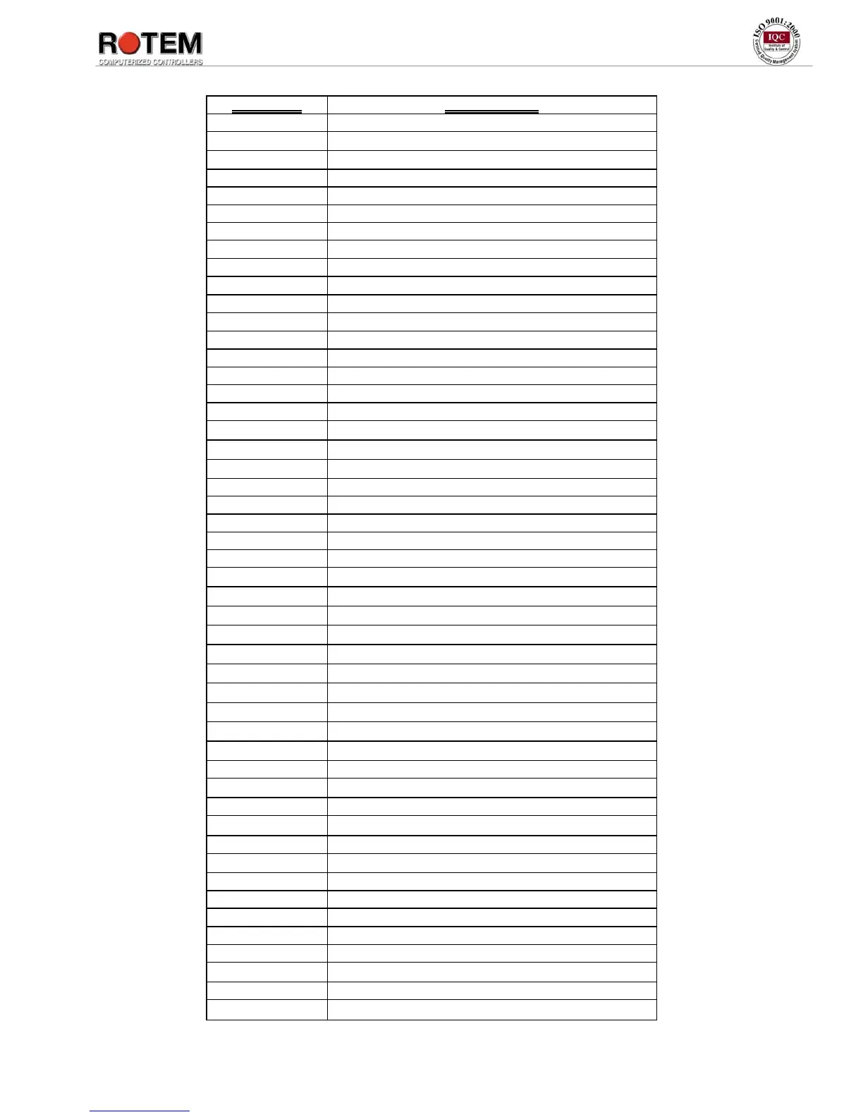CODE No. DISCRIPTION