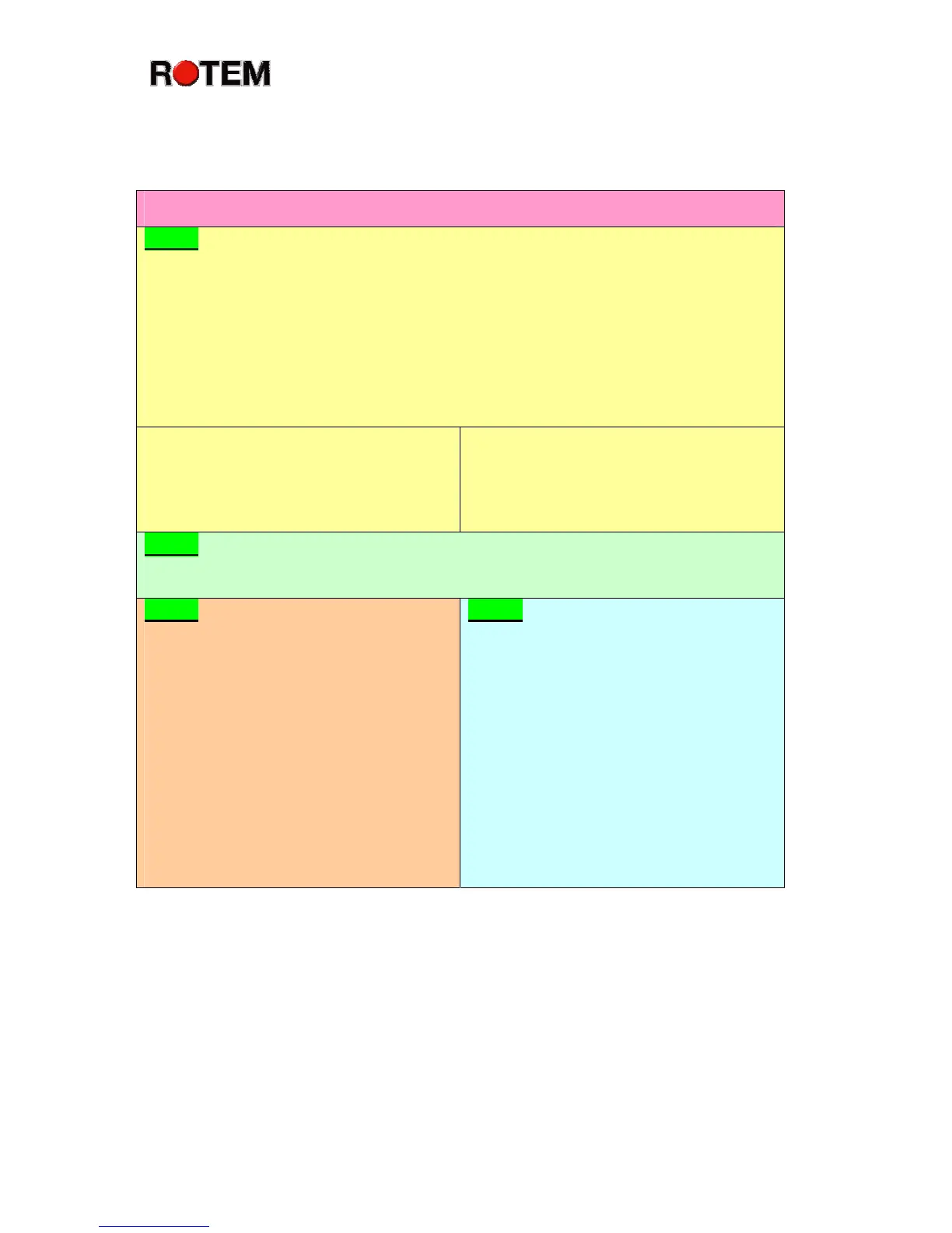 Standard Mode Settings: