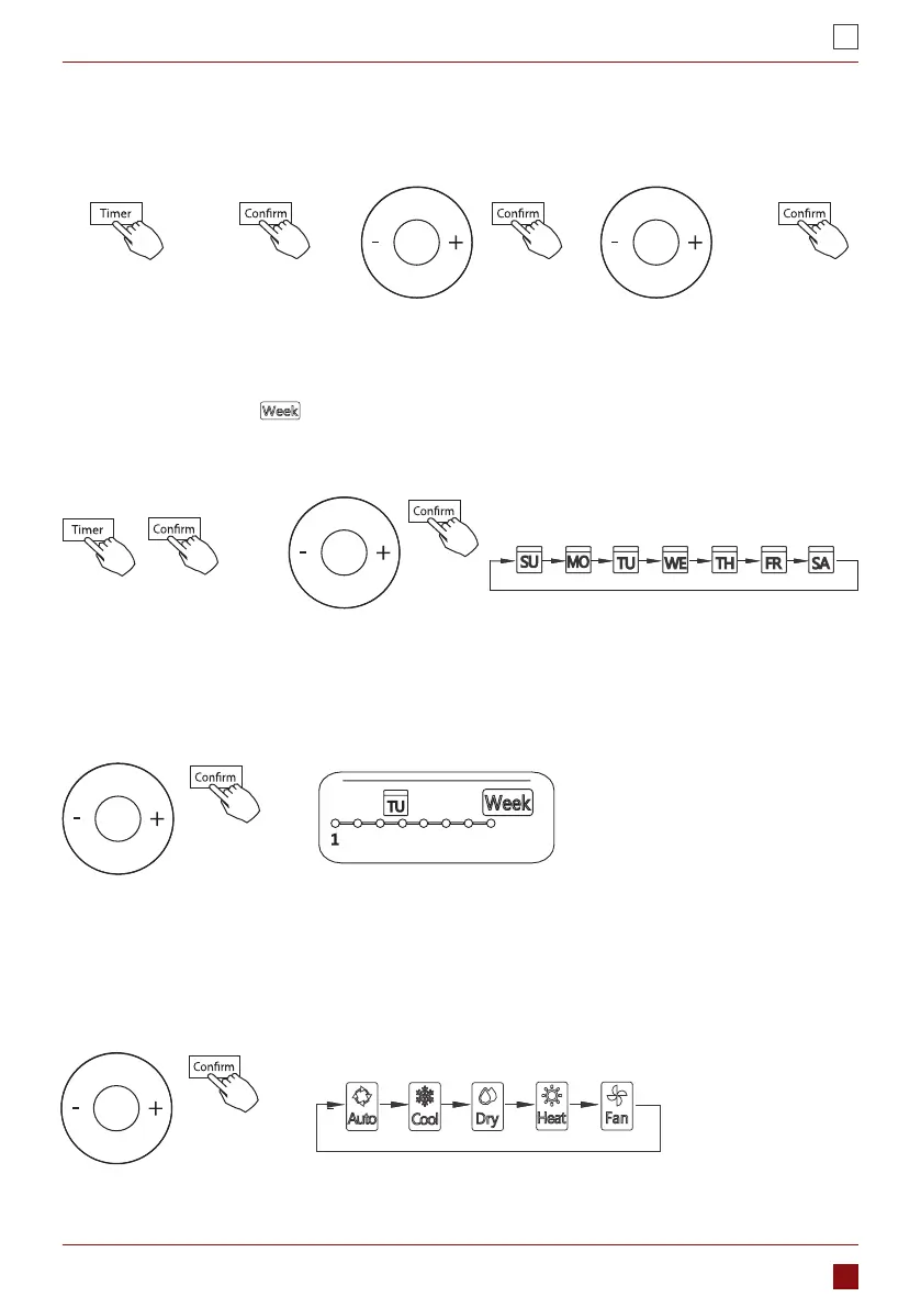 Press + and − to set the operation mode then press CONFIRM. Room temperature setting