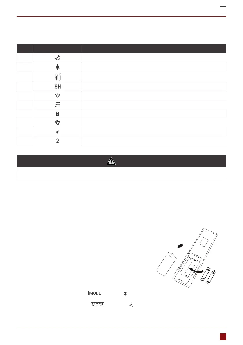migać, aby ustawić tryb pracy „tylko chłodzenie.”