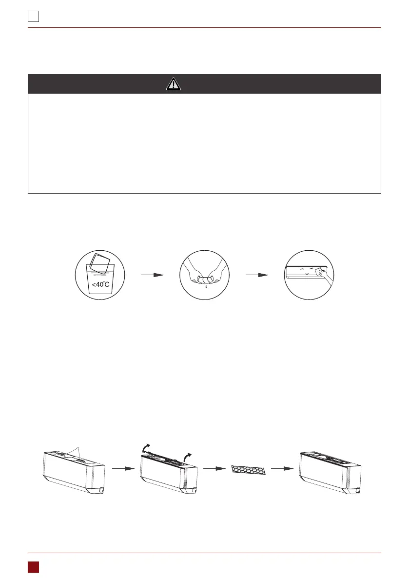 • Po wyjęciu ltra nie dotykaj lameli jednostki wewnętrznej, aby uniknąć ich zarysowania.