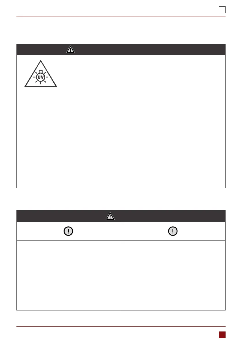 UWAGA: Promieniowanie UV jest niebezpieczne dla oczu i skóry. Nie używaj