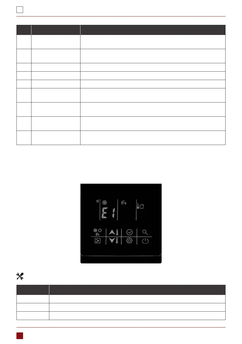 Sterownik przewodowy działa również jako detektor do wyświetlania alarmu urządzenia, jak w poniższej tabeli: