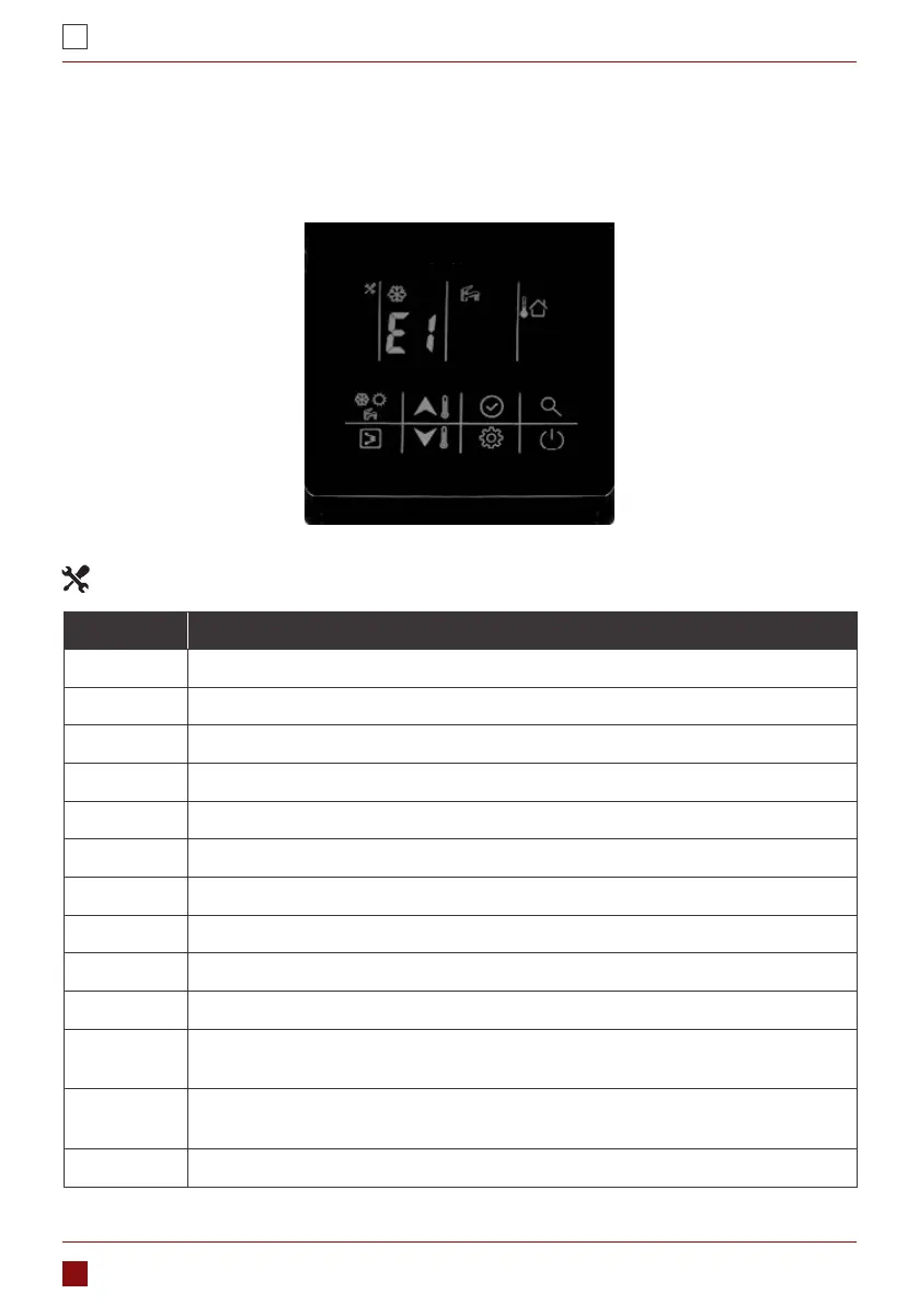 This wired controller is also worked as the detector to display the alarm of the unit as follow table: