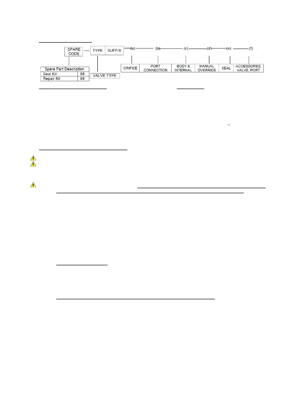 SPARE ORDERING CODE