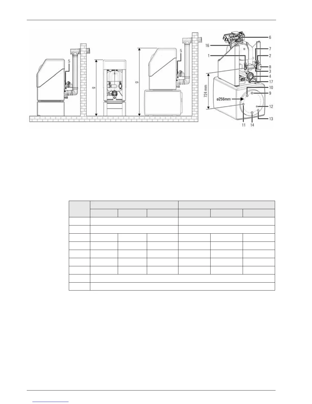 Tab. 7-1 Installation dimensions for gas condensing boilers A1 BG 25i / A1 BG 40i