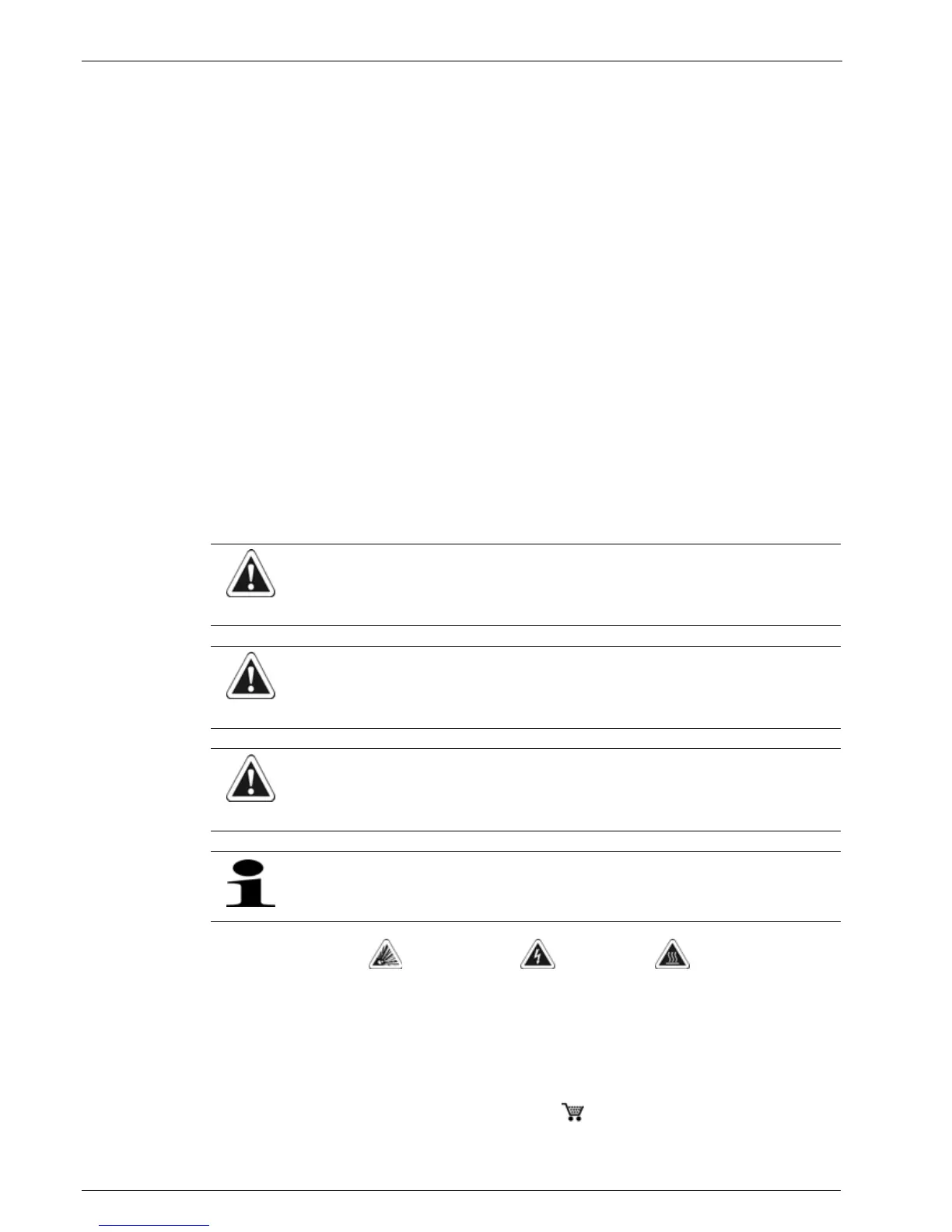 The warnings are classified in this manual according to their severity and probability of occurrence.