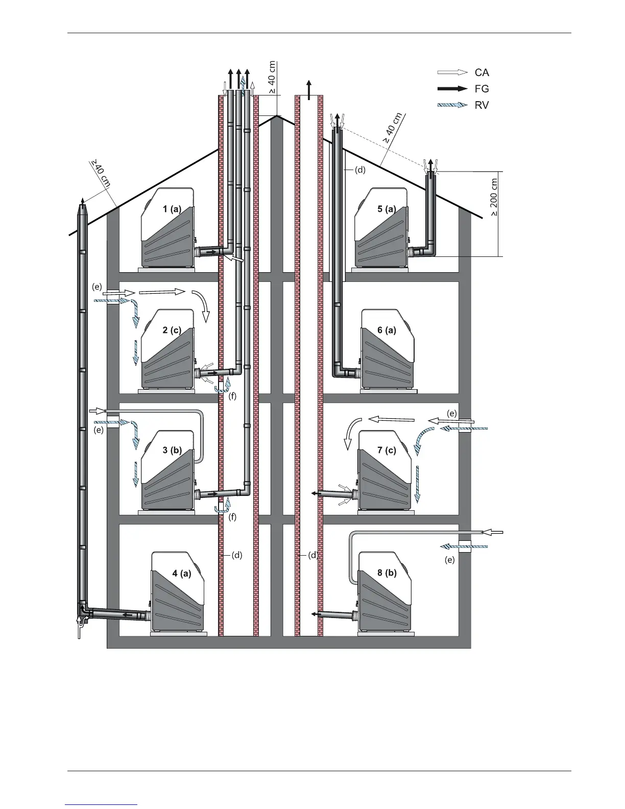 Fig. 4-4 Installation variants for the Gas condensing boiler in series A1 BG