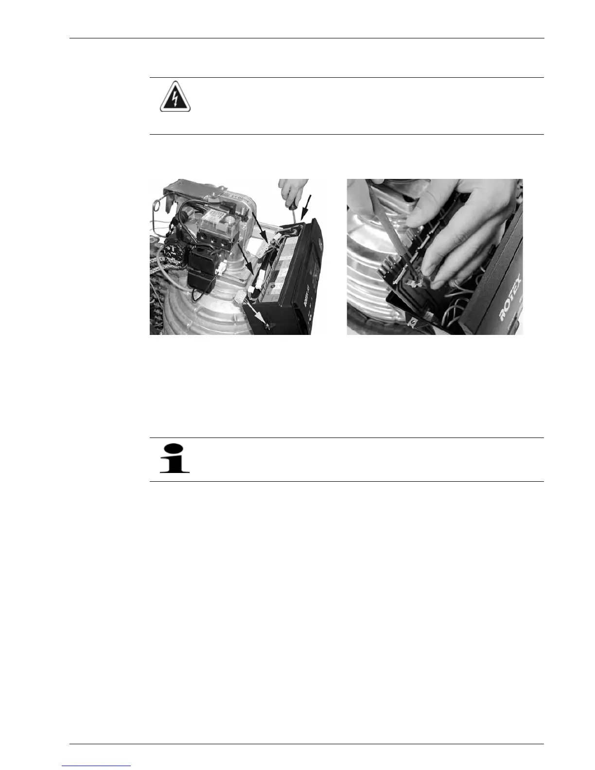 • Before beginning work on the oil condensing boiler, disconnect it from the power supply (switch off fuse,