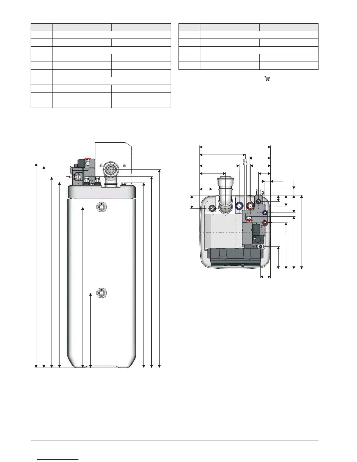 4.1.1 Connection dimensions for the heating and hot water connections