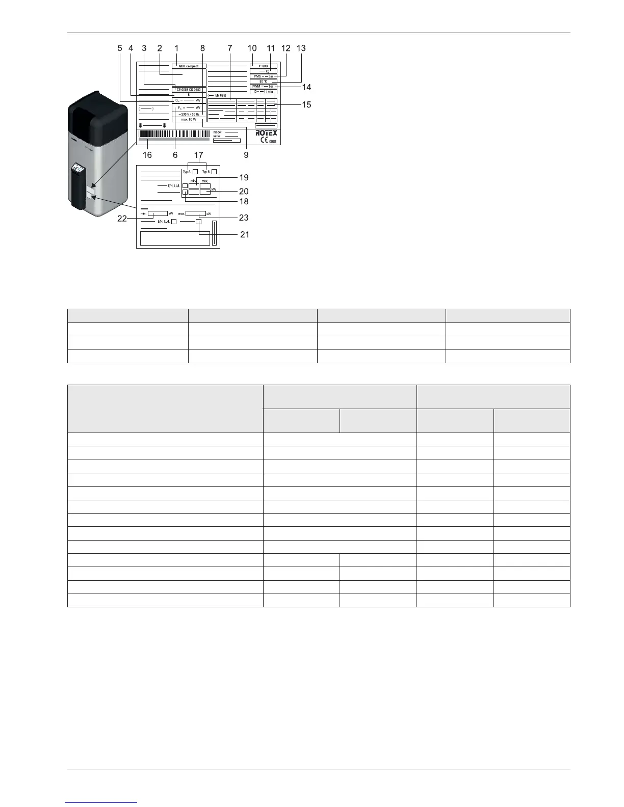 12-1 Information on the Type plate (top) and settings type plate (bottom)