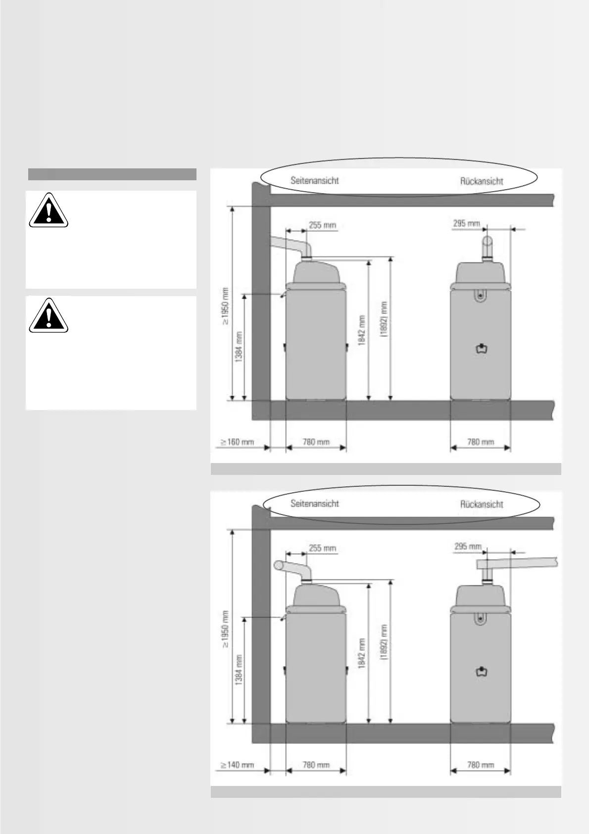 Fig. 3.3.2: Installation dimensions for flue connection at the side
