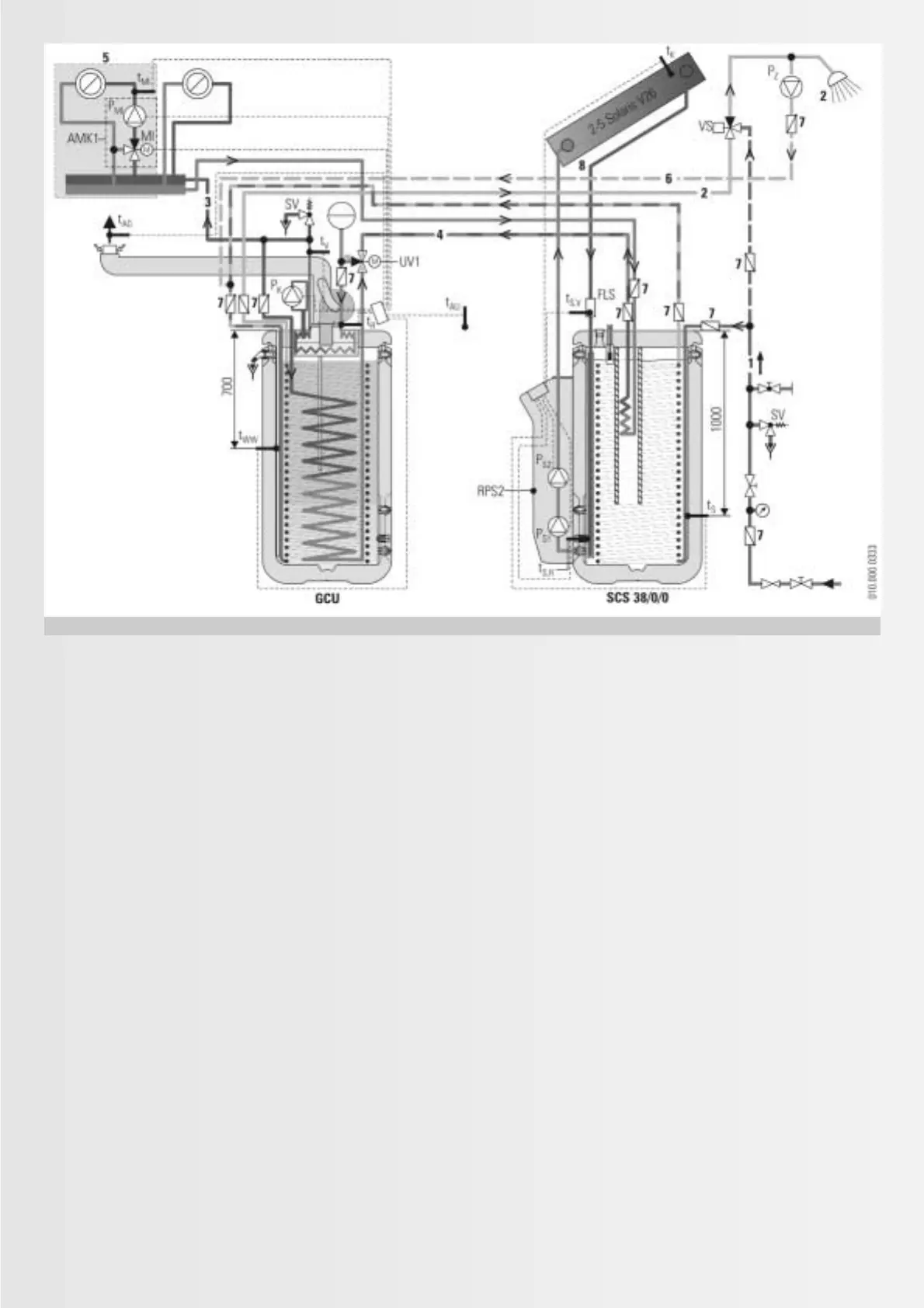 Fig. 5.3.7: Hydraulic system connection GCU with solar pre-heating